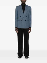 double-breasted wool jacket Highlights - Blue - Peak lapels - Button closure - Decorative pin Made in Italy Composition Virgin Wool 100%, Viscose 52%, Cupro 48% SIZE & FIT Model measurements Height 6 ft 2 in(1.87 m) Bust/Chest 36.41 in(92.5 cm) Hips 37 in(94 cm) Waist 29.52 in(75 cm) Washing instructions Dry Clean Only