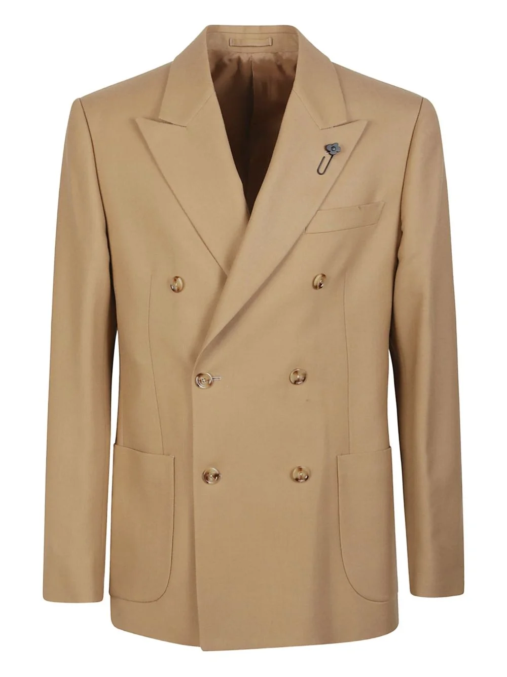 double-breasted wool jacket Highlights - Brown - Double-breasted - Patch pockets - Button fastening - Peak lapel Made in Italy Composition Wool 100% Washing instructions Read Manufacturer Guidelines