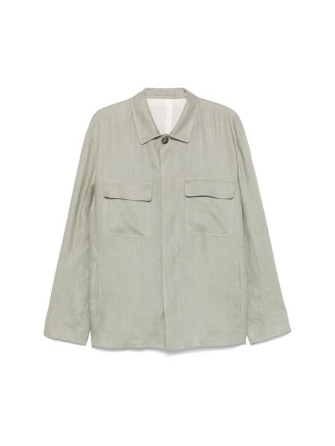 Esansel shirt jacket Highlights - Sage green - Concealed front button fastening - Buttoned cuffs - Two chest flap pockets - Two side slit pockets Made in Italy Composition Linen/Flax 100%, Cotton 100% SIZE & FIT FittingInformation Designed for a relaxed fit, this piece allows for comfort and movement when worn Made from a midweight non-stretch fabric, this piece offers minimal elasticity when worn