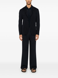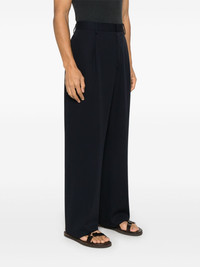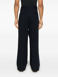 Esmigio trousers Highlights - Midnight blue - Concealed front button, hook and zip fastening - Two side inset pockets - Two rear welt pockets - Belt loops Made in Italy Composition Outer: Virgin Wool 100% Lining: Polyester 65%, Cotton 35% SIZE & FIT Model measurements Height 6 ft 1 in(1.86 m) Bust/Chest 35.82 in(91 cm) Hips 36.61 in(93 cm) Waist 28.34 in(72 cm) FittingInformation Designed with a wide leg, offering a loose and roomy fit Made from a midweight non-stretch fabric