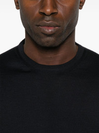 fine-knit T-shirt Highlights - Midnight blue - Ribbed cuffs and hem - Crew neck - Short sleeves Made in Italy Composition Wool 75%, Silk 20%, Cashmere 5% SIZE & FIT Model measurements Height 6 ft 0 in(1.84 m) Bust/Chest 35.82 in(91 cm) Hips 37 in(94 cm) Waist 28.34 in(72 cm) FittingInformation Designed for a regular fit allowing for a comfortably loose fit throughout the body Made with a lightweight knit, this piece offers some stretch