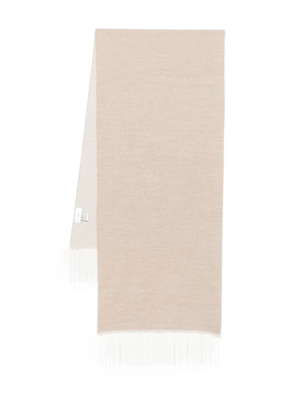 fringed wool scarf Highlights - Beige - Fringe trim - Rectangular shape Made in Italy Composition Virgin Wool 90%, Cashmere 10% SIZE & FIT Measurement LENGTH 78.74 in(200 cm) WIDTH 18.5 in(47 cm)