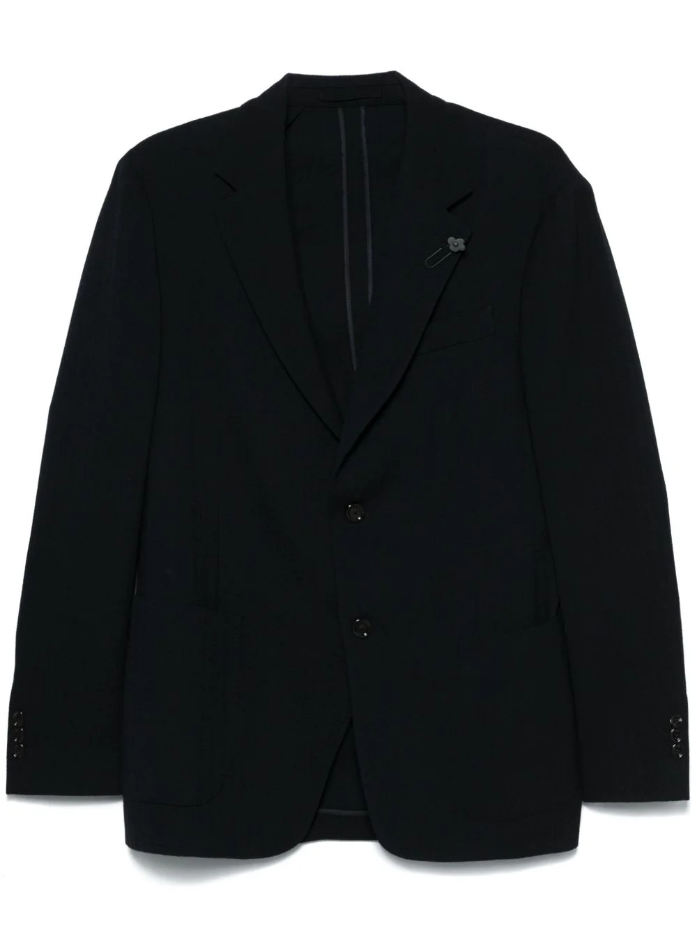 herringbone-pattern blazer Highlights - Midnight blue - Front button fastening - English rear vents - Buttoned-cuff sleeves - Two front patch pockets Made in Italy Composition Wool 67%, Viscose 52%, Cupro 48%, Cotton 17%, Polyester 15%, Elastane 1% SIZE & FIT Model measurements Height 6 ft 2 in(1.87 m) Bust/Chest 38.18 in(97 cm) Hips 36.61 in(93 cm) Waist 29.13 in(74 cm) FittingInformation Designed for a slim fit, offering a comfortable fit that sits just away from the body The vented hem offers movement at the rear Made from a midweight fabric