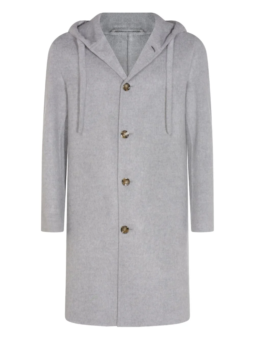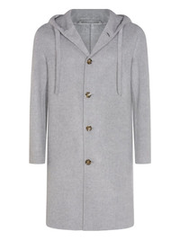 hooded button-up coat Highlights - Light grey - Drawstring hood - Button fastening - Long sleeves - Wool blend Made in Italy Composition Wool 90%, Cashmere 10% Washing instructions Read Manufacturer Guidelines