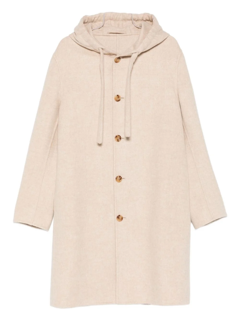 hooded coat Highlights - Light beige - Wool-cashmere blend - Drawstring hood - Front button fastening - Long sleeves - Straight hem Made in Italy Composition Wool 90%, Cashmere 10% SIZE & FIT Model measurements Height 6 ft 2 in(1.89 m) Bust/Chest 34.25 in(87 cm) Hips 34.25 in(87 cm) Waist 27.95 in(71 cm) Washing instructions Read Manufacturer Guidelines