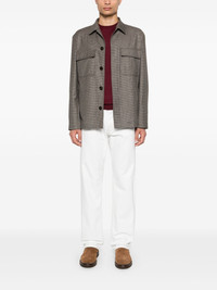 houndstooth jacket Highlights - Brown - Virgin wool-cashmere blend - Houndstooth pattern - Spread collar - Long sleeves - Buttoned cuffs - Two chest flap pockets - Two side inset pockets - Straight hem - Front button fastening - Concealed front button fastening Made in Italy Composition Outer: Virgin Wool 98%, Cashmere 2% Lining: Viscose 52%, Cupro 48% SIZE & FIT Model measurements Height 6 ft 1 in(1.85 m) Bust/Chest 35.82 in(91 cm) Hips 37.79 in(96 cm) Waist 29.13 in(74 cm) FittingInformation Designed for a regular fit, allowing for a comfortably loose fit throughout the body Made from a midweight non-stretch fabric This piece fits true to size – take your usual size