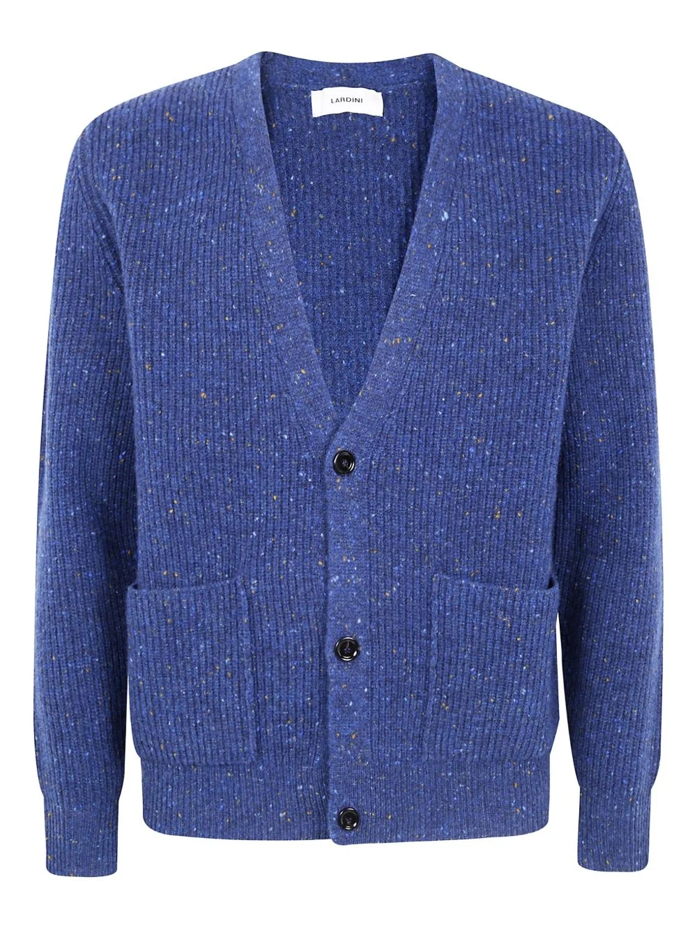 ribbed wool cardigan Highlights - Blue - Ribbed texture - Speckled pattern - V-neck - Button fastening - Patch pockets Imported Composition Wool 100% Washing instructions Read Manufacturer Guidelines