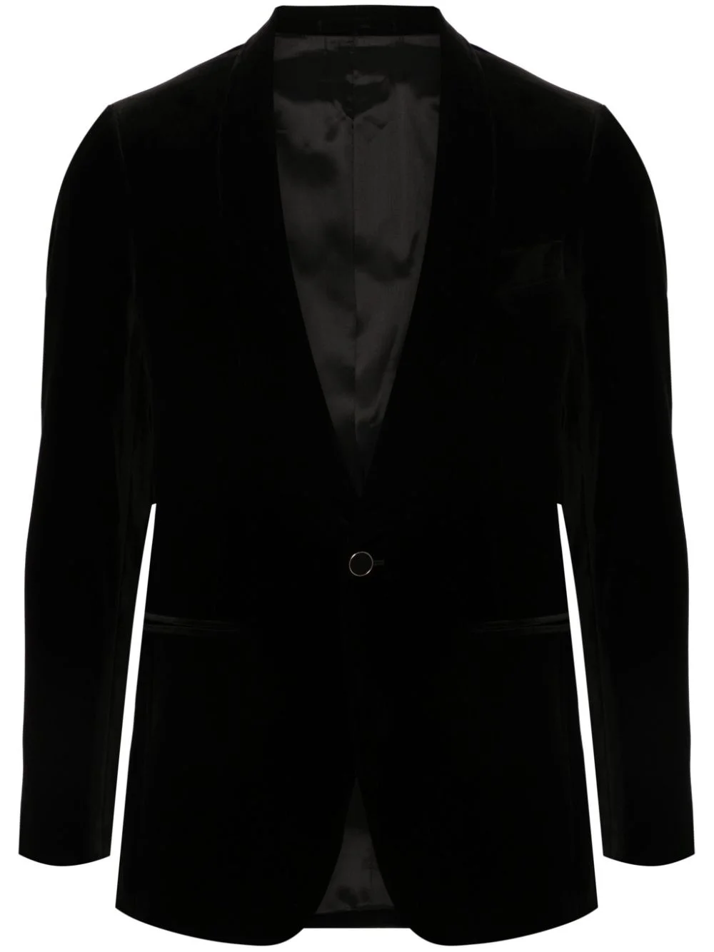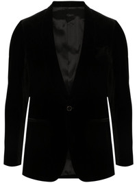 velvet blazer Highlights - Black - Cotton blend - Velvet finish - Gold-tone buttons - Shawl lapels - Front button fastening - Shoulder pads - Long sleeves - Buttoned cuffs - Chest welt pocket - Two side welt pockets - Full lining - Internal pockets - Straight hem Made in Italy Composition Lining: Viscose 52%, Cupro 48% Outer: Cotton 72%, Viscose 28% SIZE & FIT Model measurements Height 6 ft 1 in(1.86 m) Bust/Chest 37.4 in(95 cm) Hips 36.22 in(92 cm) Waist 29.52 in(75 cm) FittingInformation Designed for a slim fit, offering a comfortable fit that sits just away from the body Made from a midweight non-stretch fabric This piece fits true to size – take your usual size