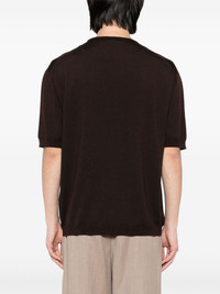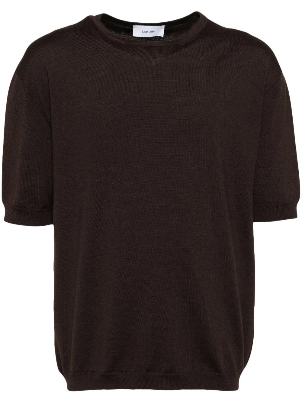 knitted T-shirt Highlights - Coffee brown - Wool blend - Knitted construction - Crew neck - Short sleeves - Ribbed cuffs and hem Made in Italy Composition Body: Wool 75% Silk 20%, Cashmere 5% SIZE & FIT Model measurements Height 6 ft 2 in(1.87 m) Bust/Chest 33.07 in(84 cm) Hips 35.43 in(90 cm) Waist 26.77 in(68 cm) FittingInformation Designed to be unstructured, offering a loose fit throughout The ribbed hem offers a close, comfortable fit Made with a midweight knit, this piece offers some stretch