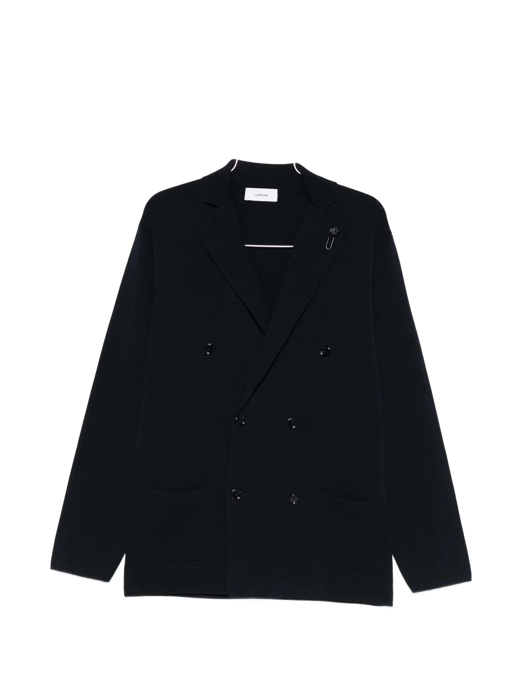 dark blue double-breasted notched lapels patch pockets button fastening flower detail - Color: BLUE - Made in: Italy - Designer Style ID: PALJM101 PA66024 850 Composition and care Cotton: 100.0%