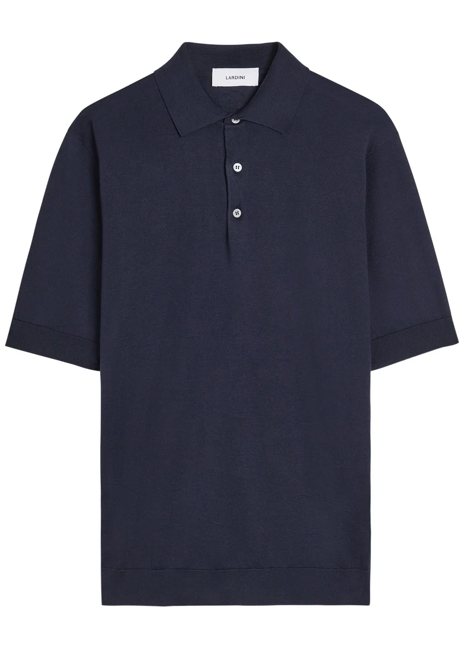 Info & Care Lardini cotton polo shirt Fine-knit, button-fastening neck, ribbed trims Slips on 100% cotton Dry clean Size & Fit Length shoulder to hem: 27 inches/ 68.5cm Midweight Regular fit, slim across the shoulders Model is 6'2"/ 188cm, chest size 38 inches and wears a size medium