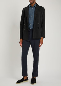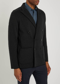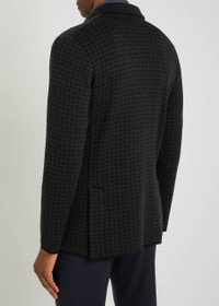 Info & Care Lardini wool cardigan Houndstooth, peaked lapels with detachable floral brooch, front patch pockets, two back vents Double-breasted button fastenings at front 100% virgin wool Dry clean Size & Fit Length shoulder to hem: 29 inches/ 73.5cm Midweight Tailored style Regular, boxy fit Model is 6'2"/ 188cm, chest size 38 inches and wears a size medium
