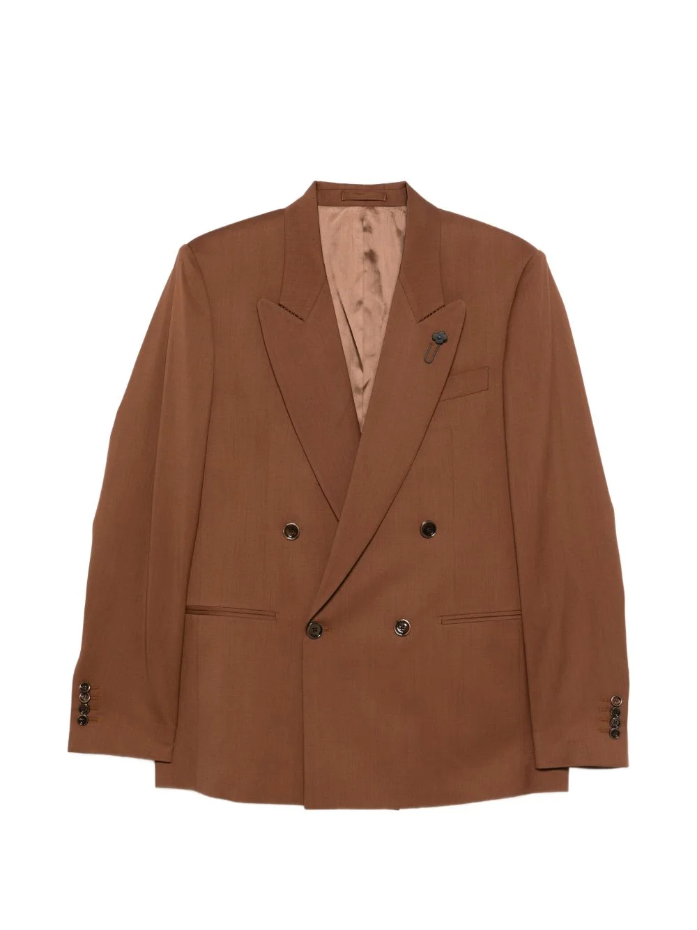 double-breasted blazer Highlights - Brown - Double-breasted - Peak lapels - Front pockets - Button fastening Made in Italy Composition Outer: Virgin Wool 100% Lining: Viscose 52%, Cupro 48% Washing instructions Dry Clean Only