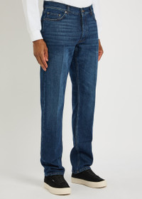 Info & Care Lardini denim jeans; Mid-rise fit, straight-leg cut, belt loops, five pockets, pressed crease through legs, whiskered, faded finish Partially concealed button fastenings at front;; 60% polyester, 40% cotton Machine wash cold inside out to avoid colour transfer; Size & Fit Front rise: 10 inches/ 25.5cm Inside leg length: 33 inches/ 84cm Midweight; Model is 6'2"/ 188cm and wears a size W32