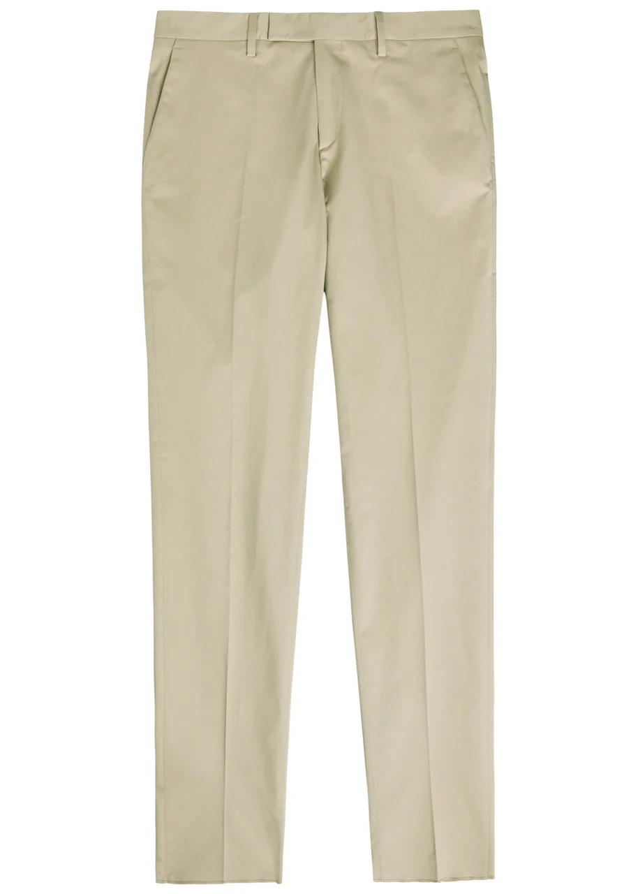 Info & Care Lardini;stretch-cotton trousers Belt loops, side slant pockets, pressed crease through legs, button-fastening back pockets Unfinished cuffs to allow for length alterations Concealed hook, button and zip fastening at front 98% cotton, 2% elastane; lining: 100% viscose Dry clean Size & Fit Inside leg length: 36 inches/ 91.5cm Midweight Tapered-leg cut, tailored style; Model is 6'2"/ 188cm and wears a size IT48 Please note, cuffs are unfinished to allow for leg alterations