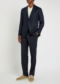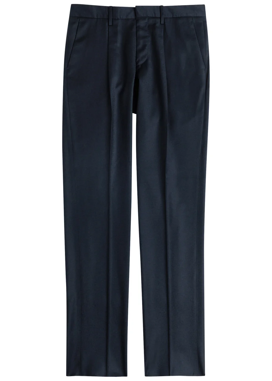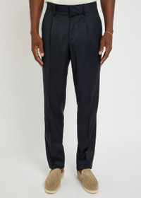 Info & Care Lardini wool and cashmere-blend trousers Belt loops, side slip pockets, pressed crease through legs, button-fastening back pockets, unfinished cuffs to allow for leg alterations Concealed hook, button and zip fastening at front 89% wool, 10% cashmere, 1% elastane Dry clean Size & Fit Inside leg length: 36 inches/ 91.5cm Midweight Tapered-leg cut Designed to sit high on the waist Model is 6'1"/ 185cm and wears a size;IT48