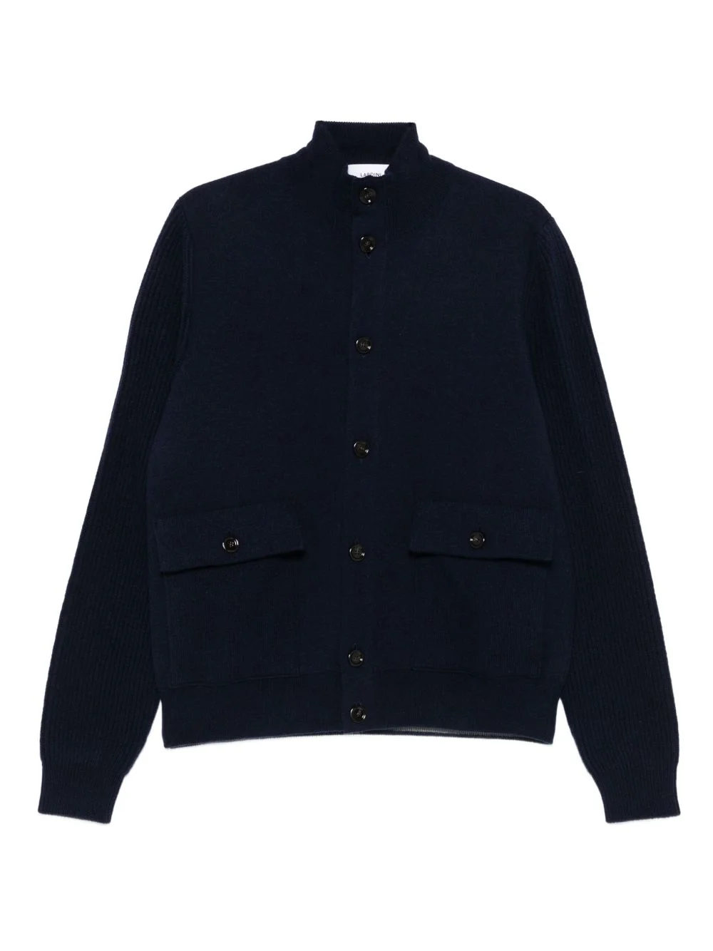 ribbed-panel button cardigan Highlights - Dark blue - Ribbed panels - Button fastening - High neck - Flap pockets Made in Italy Composition Wool 96%, Polyamide 4% Washing instructions Read Manufacturer Guidelines
