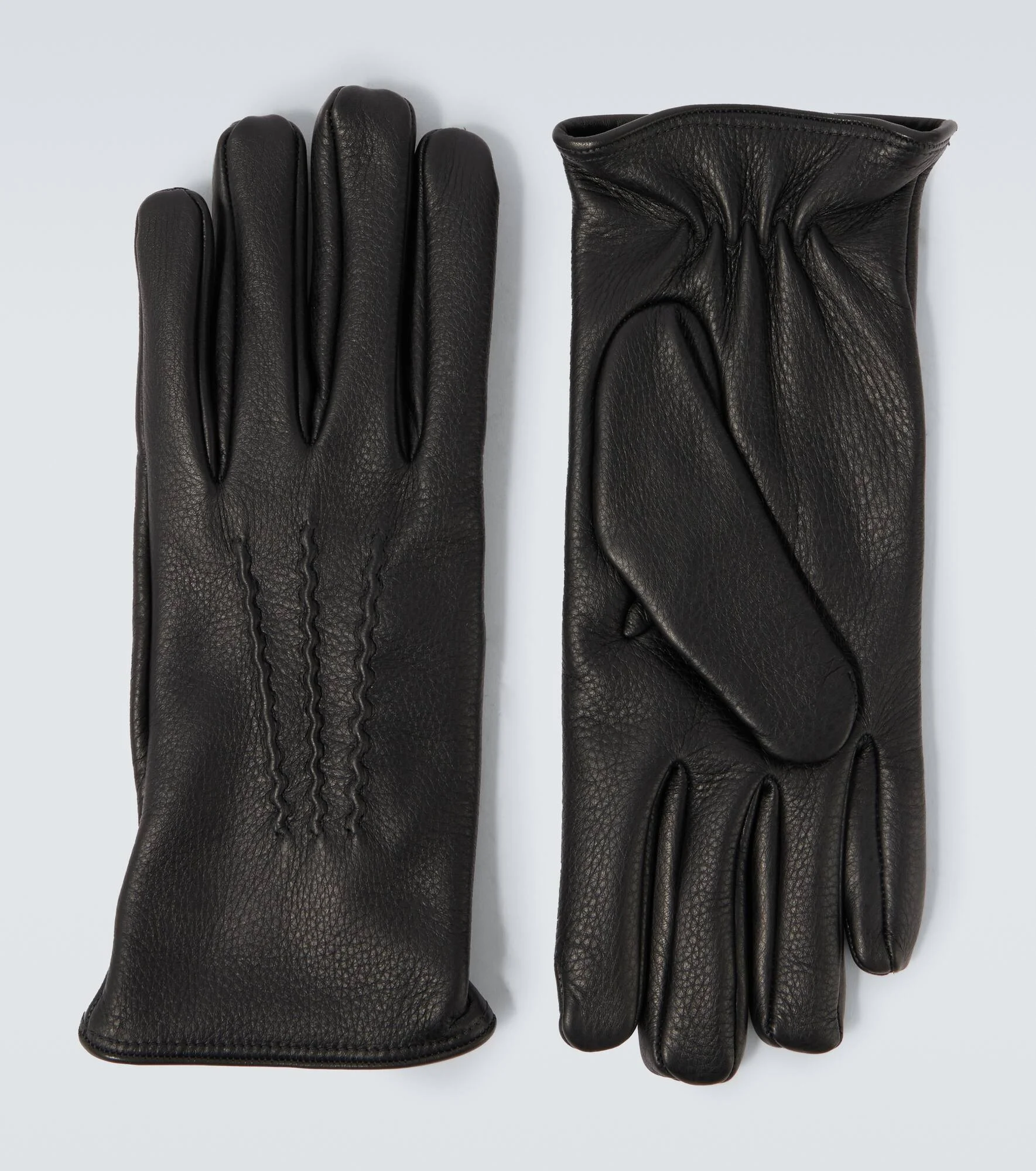 Crafted in Italy from supple leather and lined with soft cashmere, these Lardini gloves offer both warmth and sophistication. Visible stitching adds a refined touch to this bold cold-weather accessory. Product Details - Material: 100% deer leather - Care instructions: specialist clean - Made in Italy - Designer color name: Black - Item color: black - Includes: box - Filling: 100% cashmere - Item number: P01066666 Size & Fit - Width of palm 10cm-4" - Length of size S = %cm%cm-%inch%" - Length of size M = 26cm-10" - Length of size L = %cm%cm-%inch%" - Length of size XL = %cm%cm-%inch%"