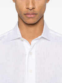 linen polo shirt Highlights - White - Front button placket - Polo collar - Short sleeves - Short side slits Made in Italy Composition Linen/Flax 100% SIZE & FIT Model measurements Height 6 ft 2 in(1.87 m) Bust/Chest 38.18 in(97 cm) Hips 36.61 in(93 cm) Waist 29.13 in(74 cm) FittingInformation Designed for a loose fit, this polo shirt offers additional room throughout Made from a midweight non-stretch fabric