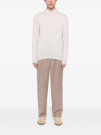 logo embroidered polo Highlights - Off-white - Polo collar - Ribbed cuffs and hem Made in Italy Composition Cashmere 100% SIZE & FIT Model measurements Height 6 ft 2 in(1.87 m) Bust/Chest 33.07 in(84 cm) Hips 35.43 in(90 cm) Waist 26.77 in(68 cm) FittingInformation Designed for a regular fit, this polo shirt offers a comfortable loose fit throughout the body The ribbed hem offers a close, comfortable fit Made with a lightweight knit, this piece offers some stretch Washing instructions Dry Clean Only