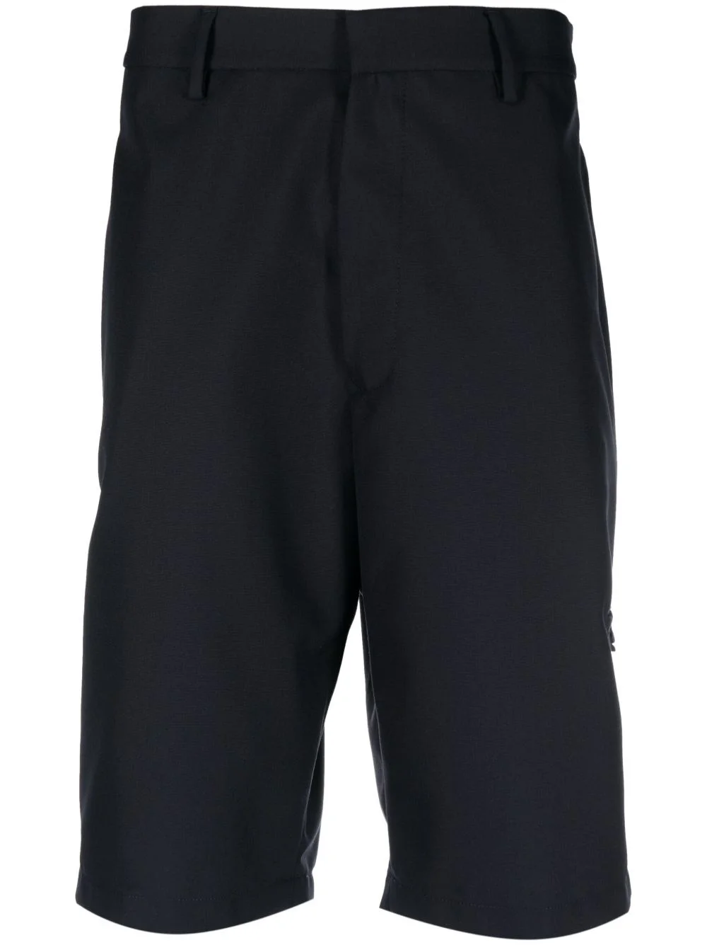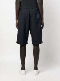 logo-patch bermuda shorts Highlights - Navy blue - Wool/cotton - Knee length - Logo patch to the rear - Belt loops - Concealed front fastening - Two side inset pockets - Two rear patch pockets Made in Italy Composition Outer: Polyester 55%, Wool 45% Lining: Cotton 100% SIZE & FIT Model measurements Height 6 ft 2 in(1.87 m) Bust/Chest 36.41 in(92.5 cm) Hips 37 in(94 cm) Waist 29.52 in(75 cm) FittingInformation Designed for a straight-leg fit, offering an unrestricted and comfortable fit over the leg Made from a midweight non-stretch fabric This piece fits true to size – take your usual size
