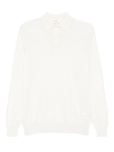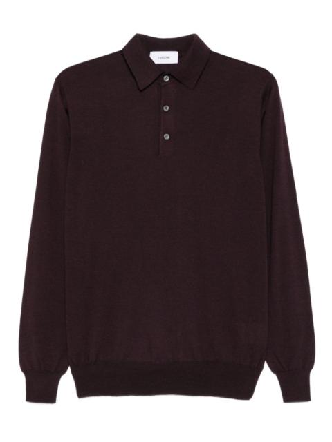 long-sleeve button polo shirt Highlights - Dark-blue - Long sleeves - Button fastening - Polo collar - Ribbed hem - Subtle horizontal stripe detail Made in Italy Composition Wool 75%, Silk 20%, Cashmere 5% SIZE & FIT Model measurements Height 6 ft 0 in(1.84 m) Bust/Chest 37.79 in(96 cm) Hips 37 in(94 cm) Waist 31.49 in(80 cm) Washing instructions Dry Clean Only