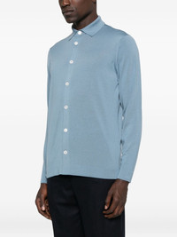 long-sleeve button-up shirt Highlights - Blue - Long sleeves - Button fastening - Polo collar - Straight hem Made in Italy Composition Virgin Wool 100% SIZE & FIT Model measurements Height 6 ft 0 in(1.84 m) Bust/Chest 37.79 in(96 cm) Hips 37 in(94 cm) Waist 31.49 in(80 cm) Washing instructions Machine Wash
