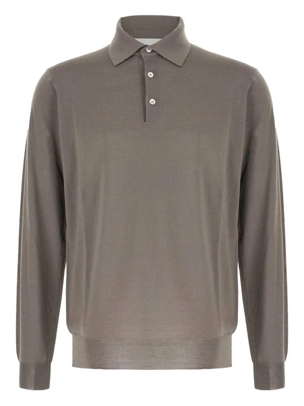 long-sleeve knitted polo shirt Highlights - Beige - Long sleeves - Ribbed hem and cuffs - Three-button placket - Wool Imported Composition Wool 100% Washing instructions Read Manufacturer Guidelines