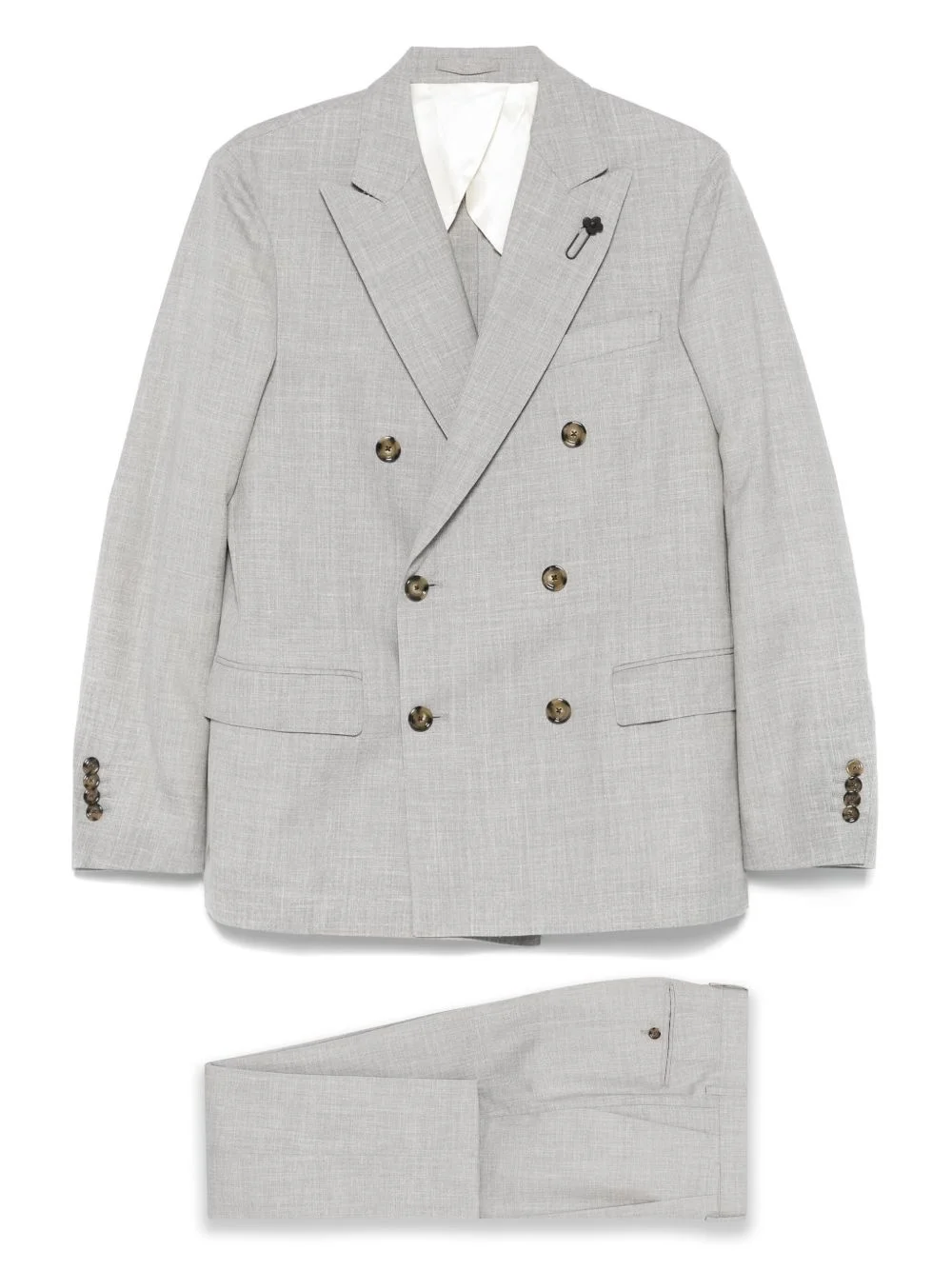 melange-effect suit Highlights - Light grey - Double-breasted button fastening - Concealed fly and button fastening - English rear vents - Internal jetted pocket Made in Italy Composition Wool 71%, Viscose 52%, Cupro 48%, Silk 15%, Linen/Flax 14% SIZE & FIT Model measurements Height 6 ft 0 in(1.84 m) Bust/Chest 37.79 in(96 cm) Hips 37 in(94 cm) Waist 31.49 in(80 cm) FittingInformation Tailored for a slim fit, offering a comfortable fit that sits just away from the body The unfinished hems allow for the length to be altered Made from a midweight non-stretch fabric