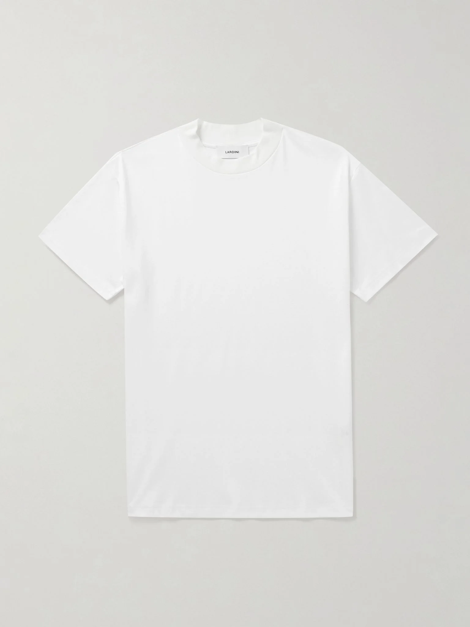 Be it tailoring or casual basics, Lardini always approaches design with an unwavering dedication to craft. This T-shirt is cut from compact cotton-jersey that's pre-shrunk and mercerised for a subtle lustre. Size & Fit - Fits true to size. Take your normal size - Designed for a regular fit - Mid-weight, stretchy fabric - Model is shown wearing a M - Model measures: chest 38"/ 96cm, height 6'2"/ 188cm Details & Care - White mercerised cotton-jersey - 100% cotton - Machine wash
