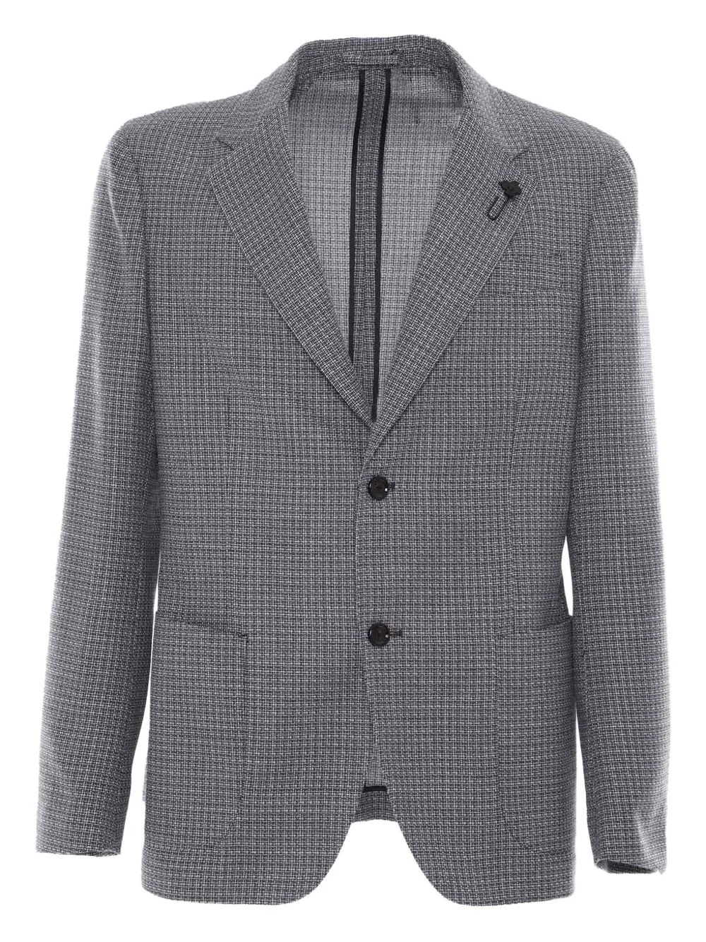 micro-check single-breasted blazer Highlights - Dark-blue - Micro-check pattern - Front button fastening - Patch pockets - Flower-shaped lapel pin - Notched lapel Made in Italy Composition Wool 62%, Cotton 38% Washing instructions Read Manufacturer Guidelines
