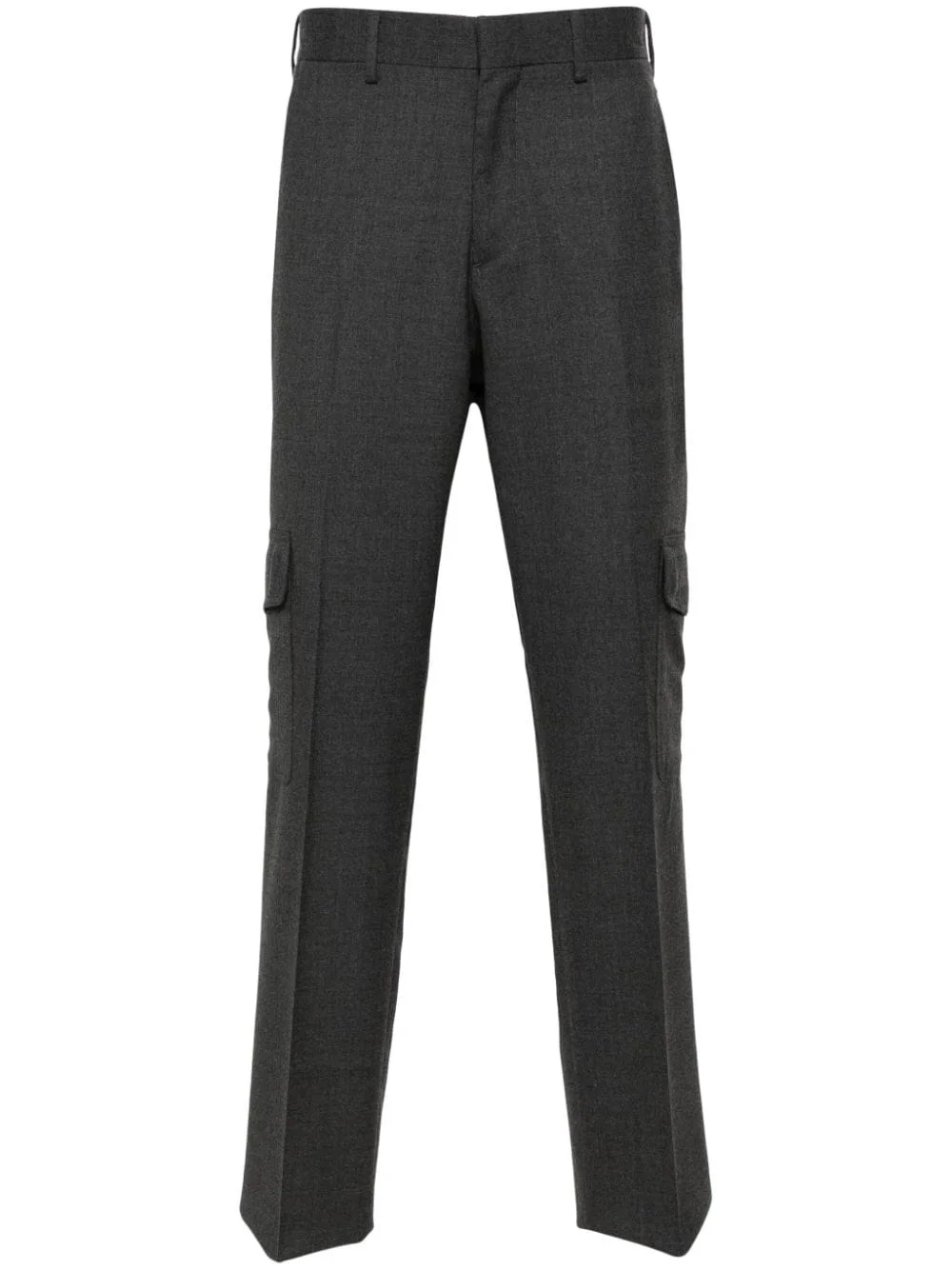 mid-rise wool cargo trousers Highlights - Dark grey - Stretch-wool - Pressed crease - Belt loops - Concealed front fastening - Mid-rise - Tapered leg - Two side inset pockets - Two side cargo pockets - Two rear flap pockets Made in Italy Composition Wool 98%, Elastane 2% Lining: Viscose 100% SIZE & FIT Model measurements Height 6 ft 2 in(1.87 m) Bust/Chest 36.41 in(92.5 cm) Hips 35.43 in(90 cm) Waist 29.52 in(75 cm) FittingInformation Designed for a slim fit, offering a comfortable fit that sits just away from the leg The unfinished hems allow for the length to be altered Made from a midweight stretch fabric, this piece offers elasticity and flexibility when worn This piece fits true to size – take your usual size Washing instructions Dry Clean Only