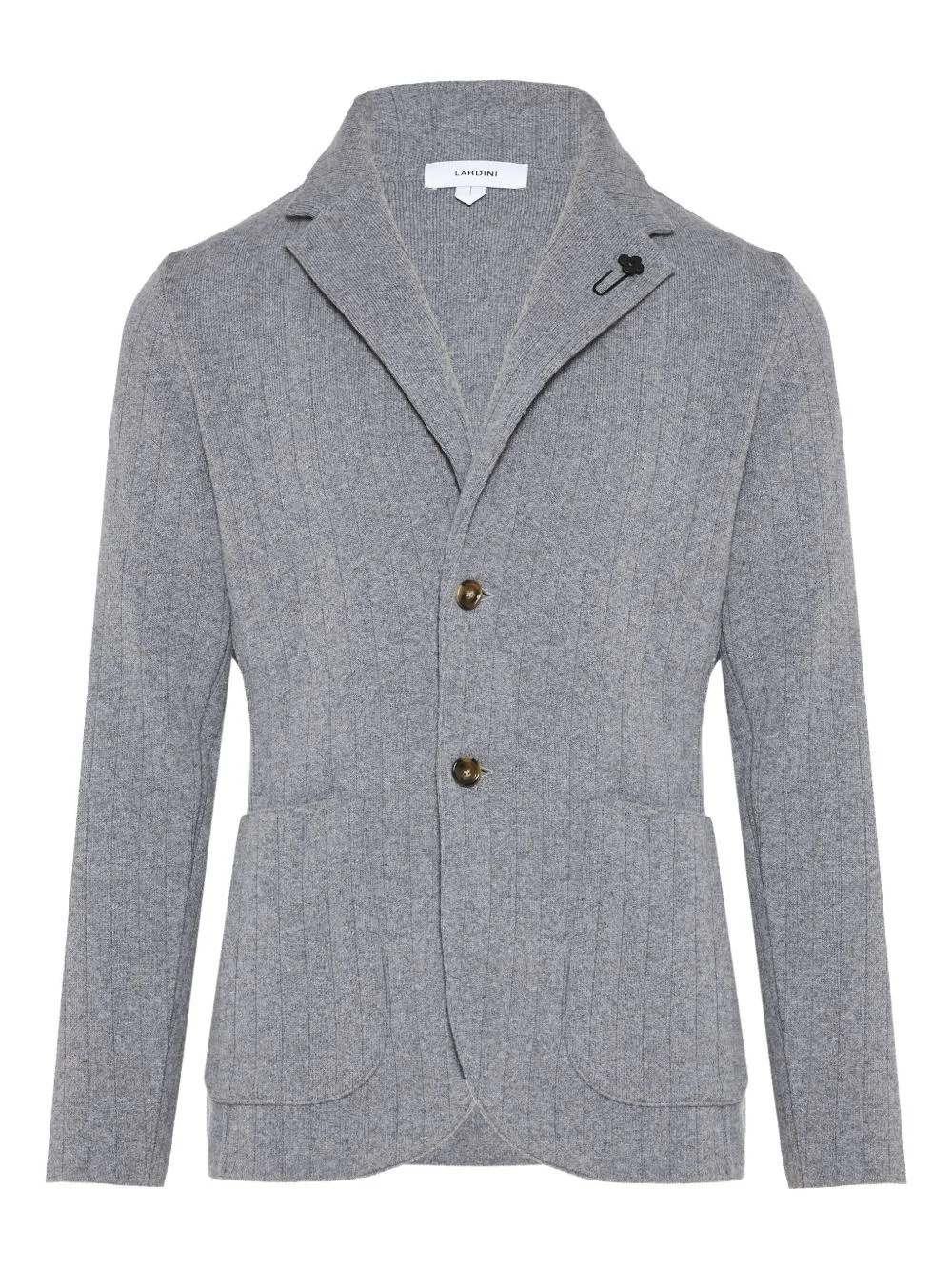 notch-collar ribbed cardigan Highlights - Grey - Ribbed texture - Front button fastening - Notched lapel - Front patch pockets - Pin detail Made in Italy Composition Virgin Wool 90%, Cashmere 10% Washing instructions Read Manufacturer Guidelines
