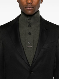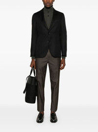 notch-lapels single-breasted blazer Highlights - Black - Tailored design - Brooch detail - Notched lapels - Front button fastening - Long sleeves with buttoned cuffs - Chest welt pocket - Two front patch pockets - English rear vents Made in Italy Composition Viscose 52%, Cupro 48%, Virgin Wool 35%, Cashmere 35%, Silk 30% SIZE & FIT Model measurements Height 6 ft 2 in(1.88 m) Bust/Chest 36.61 in(93 cm) Hips 35.82 in(91 cm) Waist 27.95 in(71 cm) FittingInformation Designed for a slim fit, offering a comfortable fit that sits just away from the body The vented hem offers movement at the rear Made from a midweight non-stretch fabric This piece fits true to size – take your usual size Washing instructions Dry Clean Only