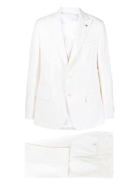 peak-lapels three-pieces suit Highlights - Black - Peak lapels - Three-piece design - Single button fastening - Welt pockets - Straight trousers Imported Composition Wool 100% Washing instructions Read Manufacturer Guidelines