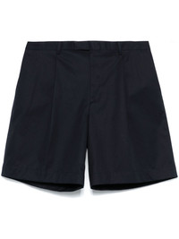 pleat-detailing shorts Highlights - Navy blue - Concealed front button, hook and zip fastening - Belt loops - Two diagonal pockets to the sides - Two rear flap pockets Made in Italy Composition Polyester 65%, Cotton 35%