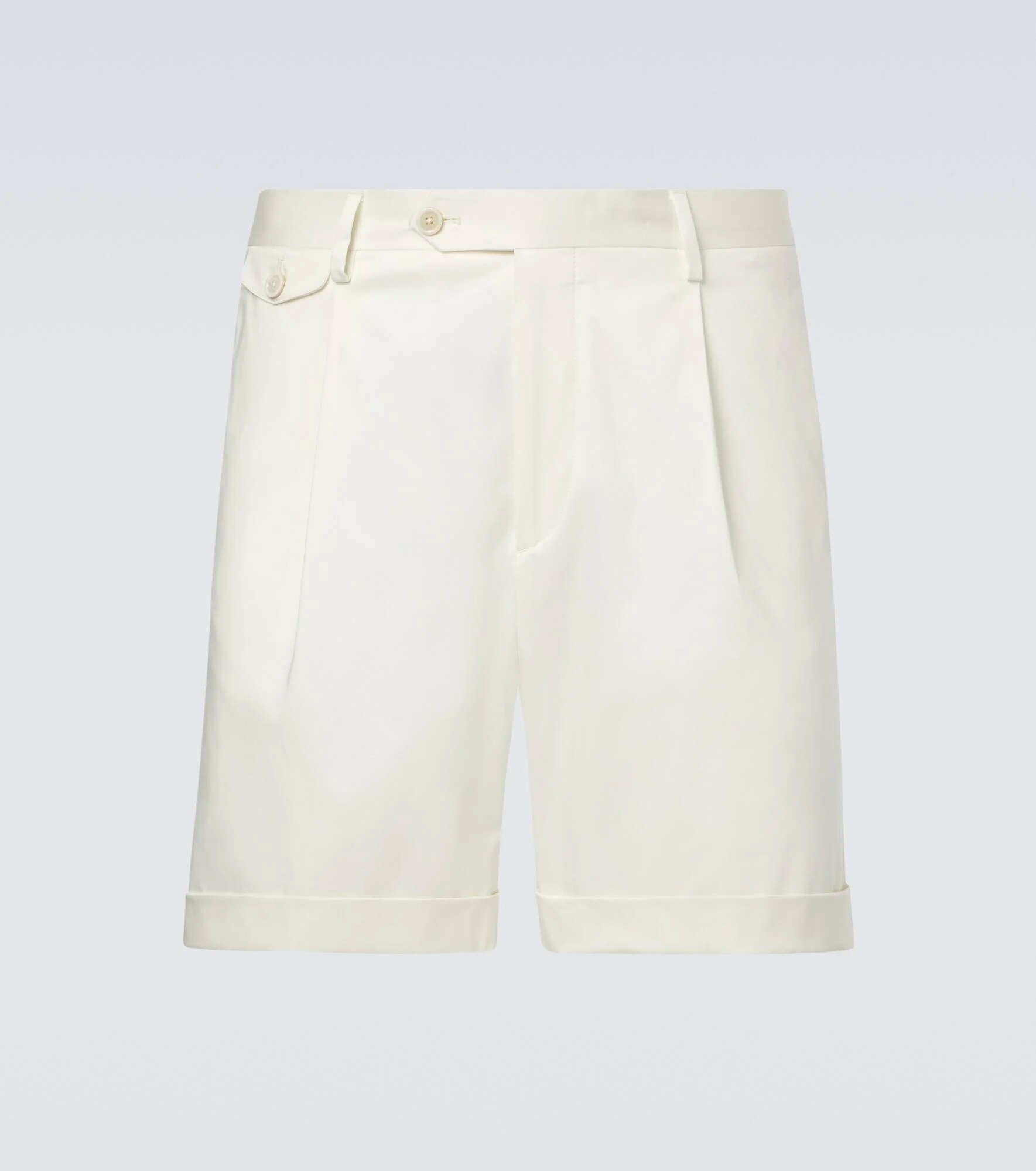A family-owned business with a legacy of Italian-made tailoring, Lardini unceasingly strives to bring together tradition and innovation. These cotton-blend Bermuda shorts are finished with folded trims and a pleated front. Product Details - Material: 96% cotton, 4% elastane - Care instructions: dry clean - Made in Italy - Color: white - Designer color name: White - Lining: 65% polyester, 35% cotton - Belt loops - Pockets: side slit pockets, flap, back pockets - Closure: zipper fly, button fastening - Item number: P01136441 Size & Fit - True to size - Non-stretchy fabric - Straight leg - The model in the picture is 185cm-6'1" and wearing a size 50