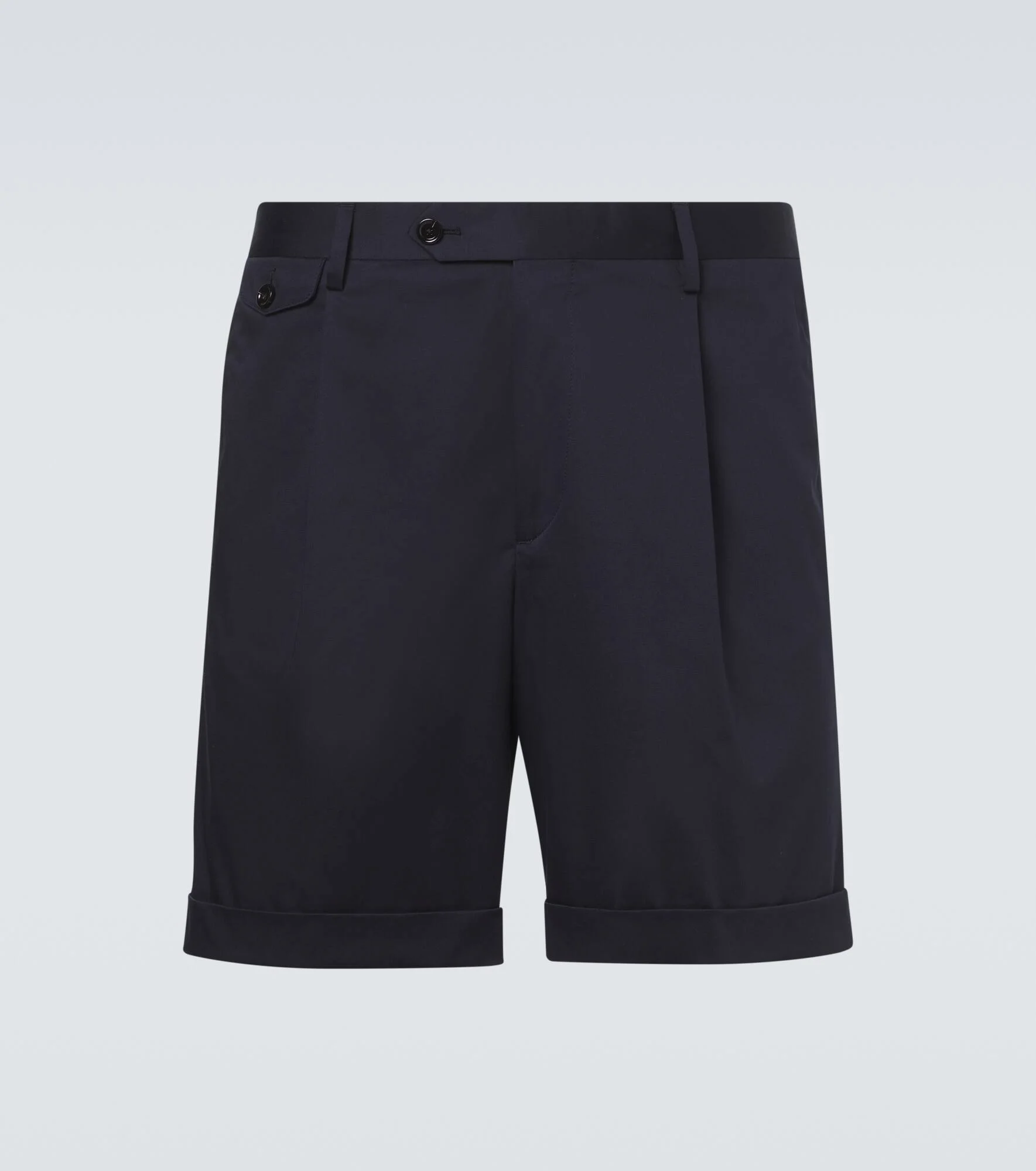 A family-owned business with a legacy of Italian-made tailoring, Lardini unceasingly strives to bring together tradition and innovation. These cotton-blend Bermuda shorts are finished with folded trims and a pleated front. Product Details - Material: 96% cotton, 4% elastane - Care instructions: dry clean - Made in Italy - Color: blue - Designer color name: Navy - Lining: 65% polyester, 35% cotton - Belt loops - Pockets: side slit pockets, back pockets, flap - Closure: zipper fly, button fastening - Item number: P01136437 Size & Fit - True to size - Non-stretchy fabric - Straight leg - Height of model is 192cm-75.5" and wears a size 50