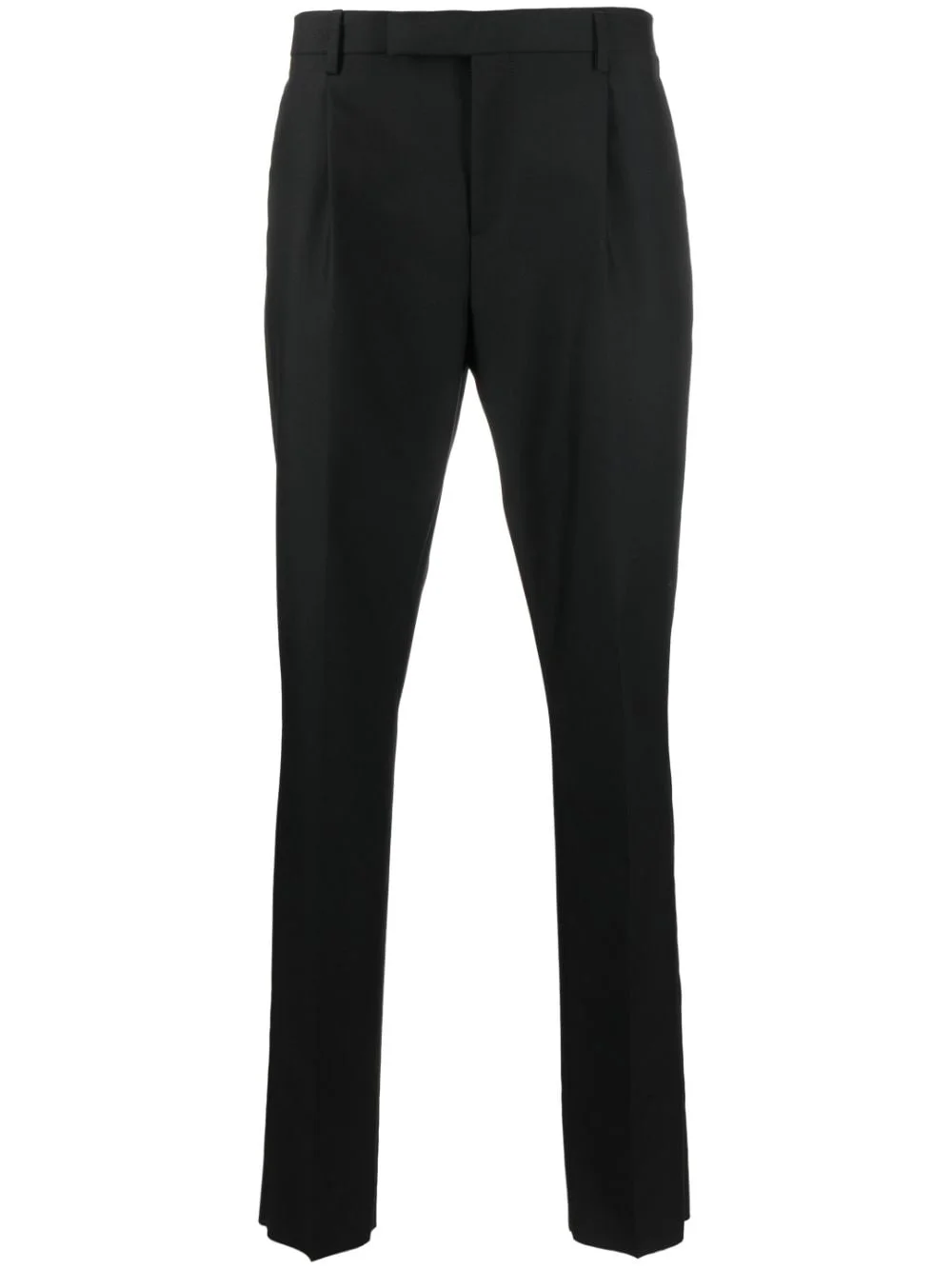 pressed-crease tapered-leg trousers Highlights - Black - Wool-mohair blend - Pressed crease - Belt loops - Concealed front fastening - Two rear button-fastening jetted pockets - Tapered leg Made in Italy Composition Viscose 100%, Wool 87%, Mohair 13% SIZE & FIT Model measurements Height 6 ft 2 in(1.89 m) Bust/Chest 38.97 in(99 cm) Hips 38.18 in(97 cm) Waist 32.28 in(82 cm) FittingInformation Designed for a slim fit, offering a comfortable fit that sits just away from the leg The unfinished hems allow for the length to be altered Made from a midweight non-stretch fabric This piece fits true to size – take your usual size Washing instructions Dry Clean Only