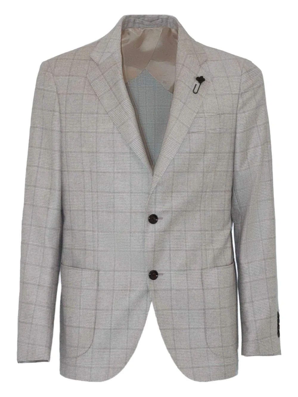 Prince-of-Wales-check blazer Highlights - Beige - Prince of wales check pattern - Two button fastening - Two side patch pockets - Brooch detail - Button cuffs - English rear vents Made in Italy Composition Wool 100% Washing instructions Read Manufacturer Guidelines