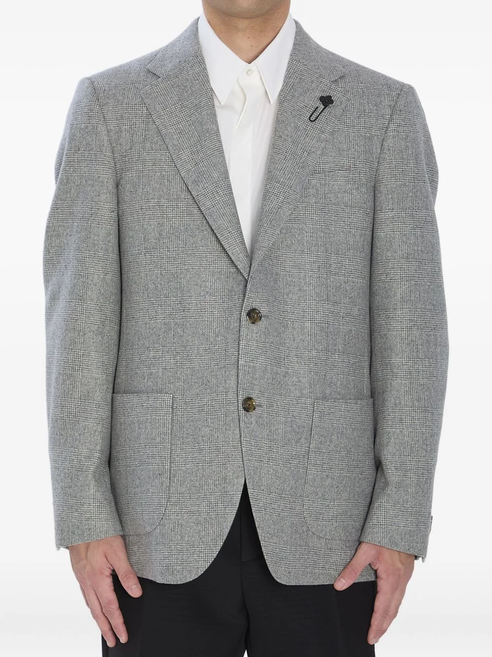 Prince of Wales check blazer Highlights - Grey - English vent - Prince of wales check-pattern - Single-breasted closure - Patch pockets - Buttoned cuffs - Notched lapels Made in Italy Composition Outer: Virgin Wool 90%, Cashmere 10% Lining: Viscose 52%, Cupro 48% Washing instructions Read Manufacturer Guidelines