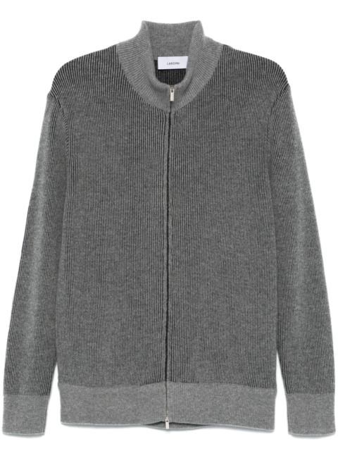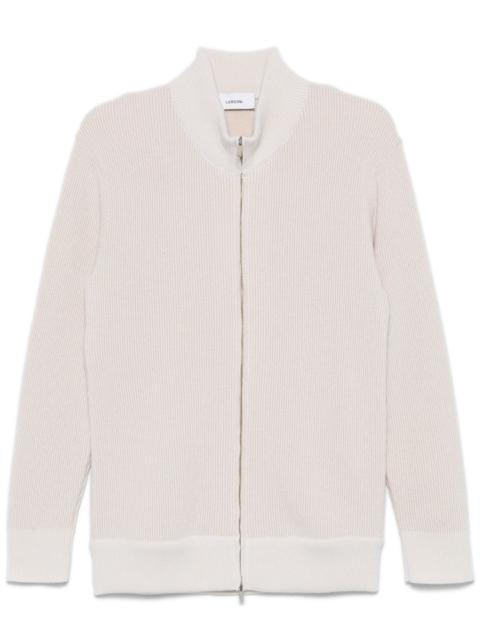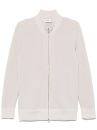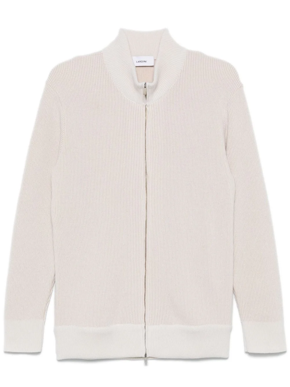 ribbed cardigan Highlights - Ecru - Virgin wool blend - Ribbed knit - Front two-way zip fastening - High neck - Long sleeves - Straight hem Made in Italy Composition Virgin Wool 55%, Cashmere 45%
