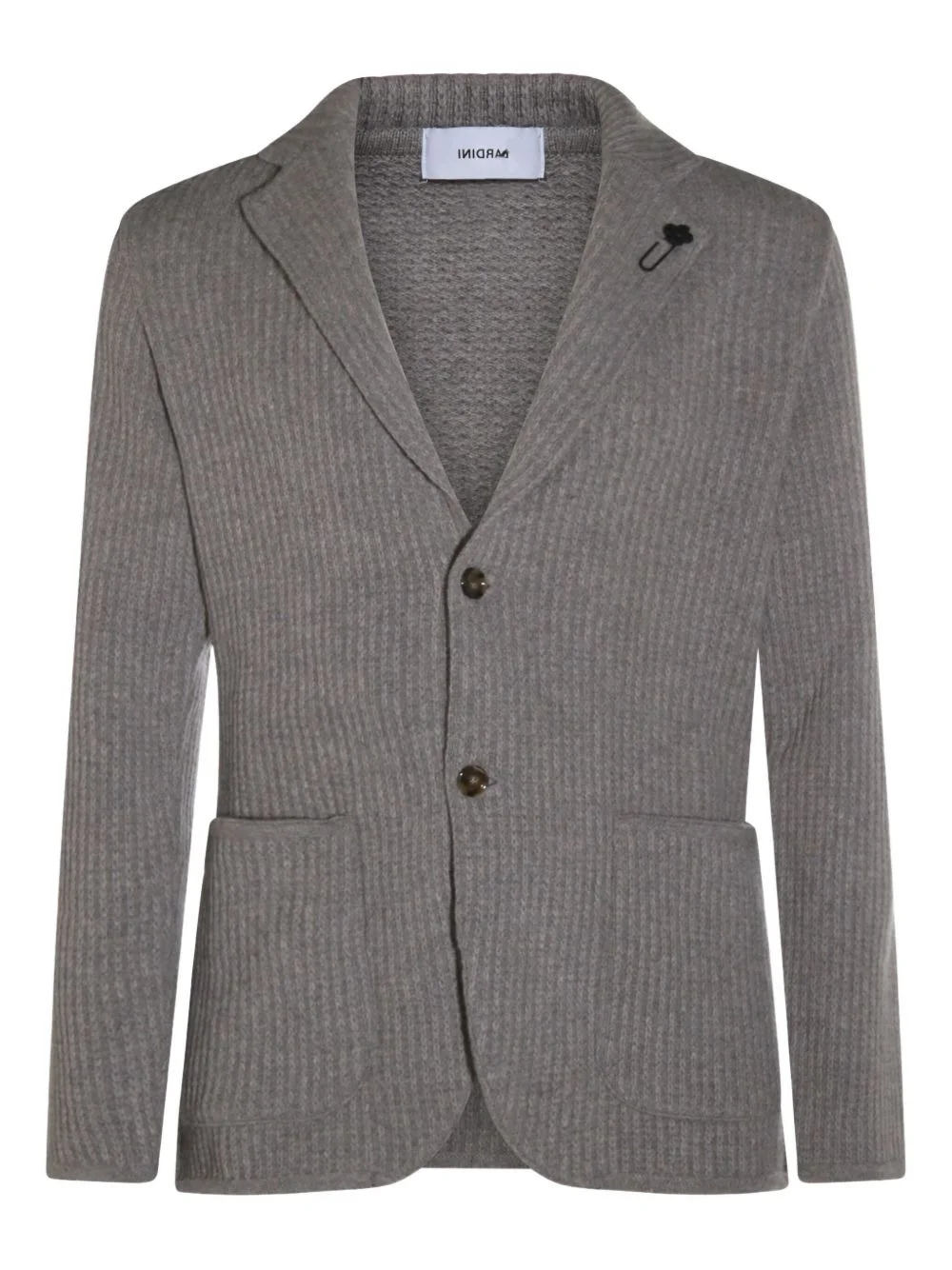 ribbed cardigan Highlights - Grey - Ribbed texture - Button fastening - Patch pocket - Notched lapel - Pin detail Made in Italy Composition Cashmere 100% Washing instructions Read Manufacturer Guidelines
