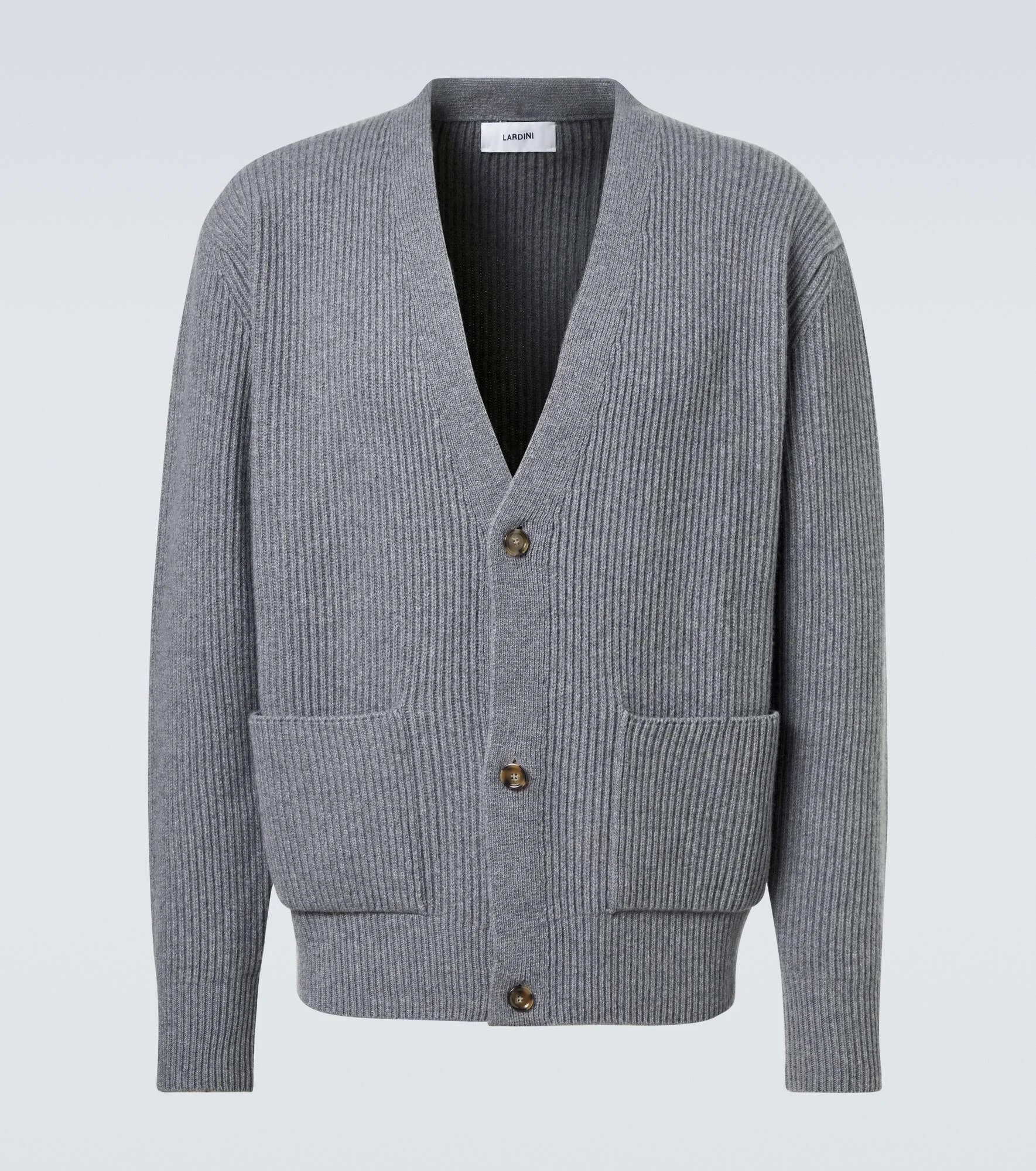 With a legacy of Italian-made tailoring, Lardini unceasingly strives to bring together tradition and innovation. Ribbed-knit from soft wool and cashmere, this timeless cardigan features a button placket at the front and patch pockets. Product Details - Material: 90% wool, 10% cashmere - Care instructions: dry clean - Made in Italy - Designer color name: Grey - Item color: gray - Closure: buttoned front - Pockets: patch pockets - Cuff: ribbed - Hem: ribbed - Item number: P01066619 Size & Fit - True to size - Dropped shoulders - Designed for a loose fit - Stretchy fabric - Falls to the hip - The model in the picture is 185cm-6'1" and wearing a size L