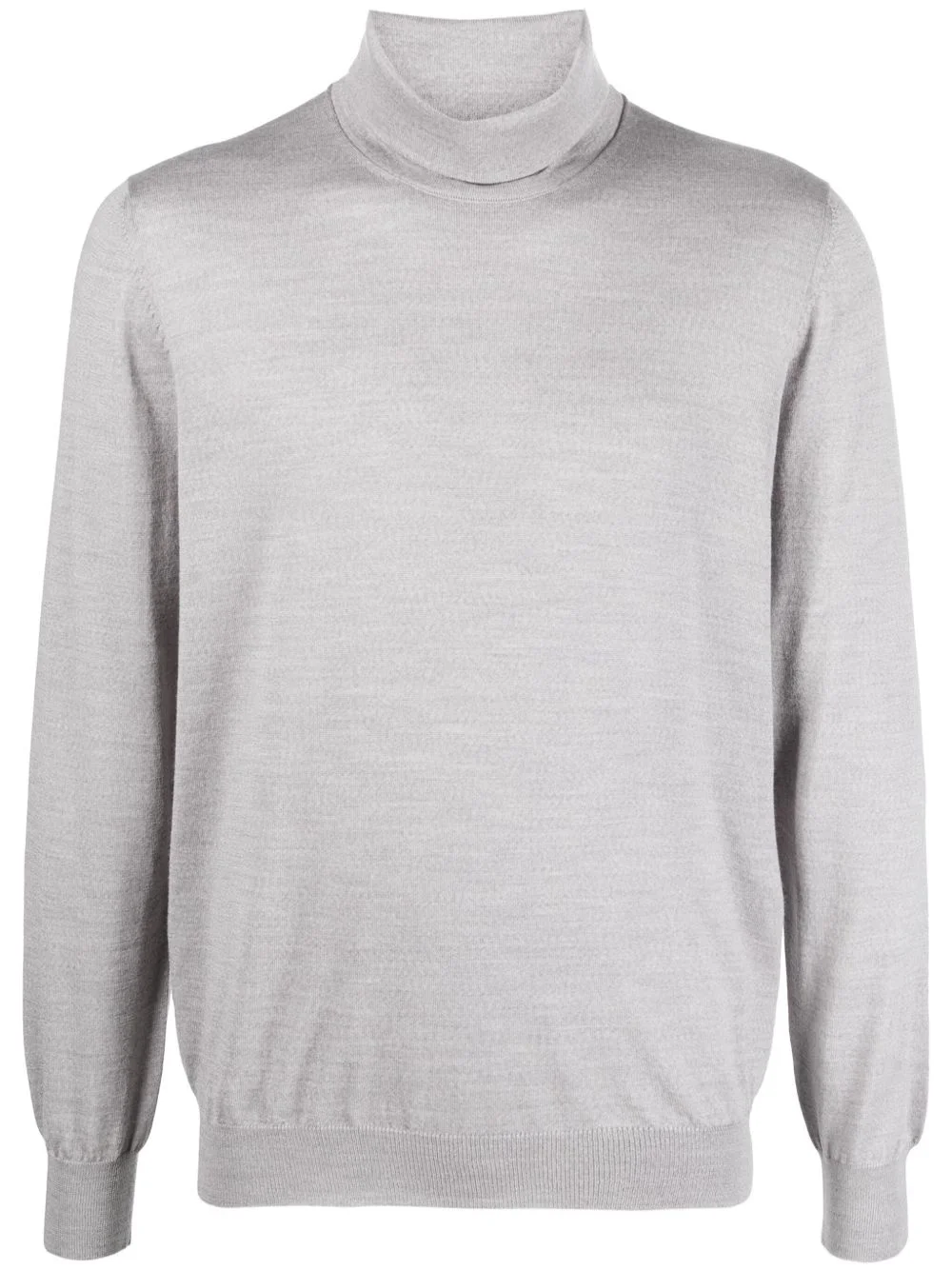roll-neck fine-knit wool jumper Highlights - Light grey - Wool - Knitted construction - Fine knit - Roll neck - Long sleeves - Ribbed cuffs and hem Made in Italy Composition Wool 100% SIZE & FIT Model measurements Height 6 ft 2 in(1.87 m) Bust/Chest 35.82 in(91 cm) Hips 35.43 in(90 cm) Waist 27.95 in(71 cm) FittingInformation Designed for a relaxed fit, this piece allows for comfort and movement when worn The ribbed hem offers a close, comfortable fit Made with a lightweight knit, this piece offers some stretch This piece fits true to size – take your usual size