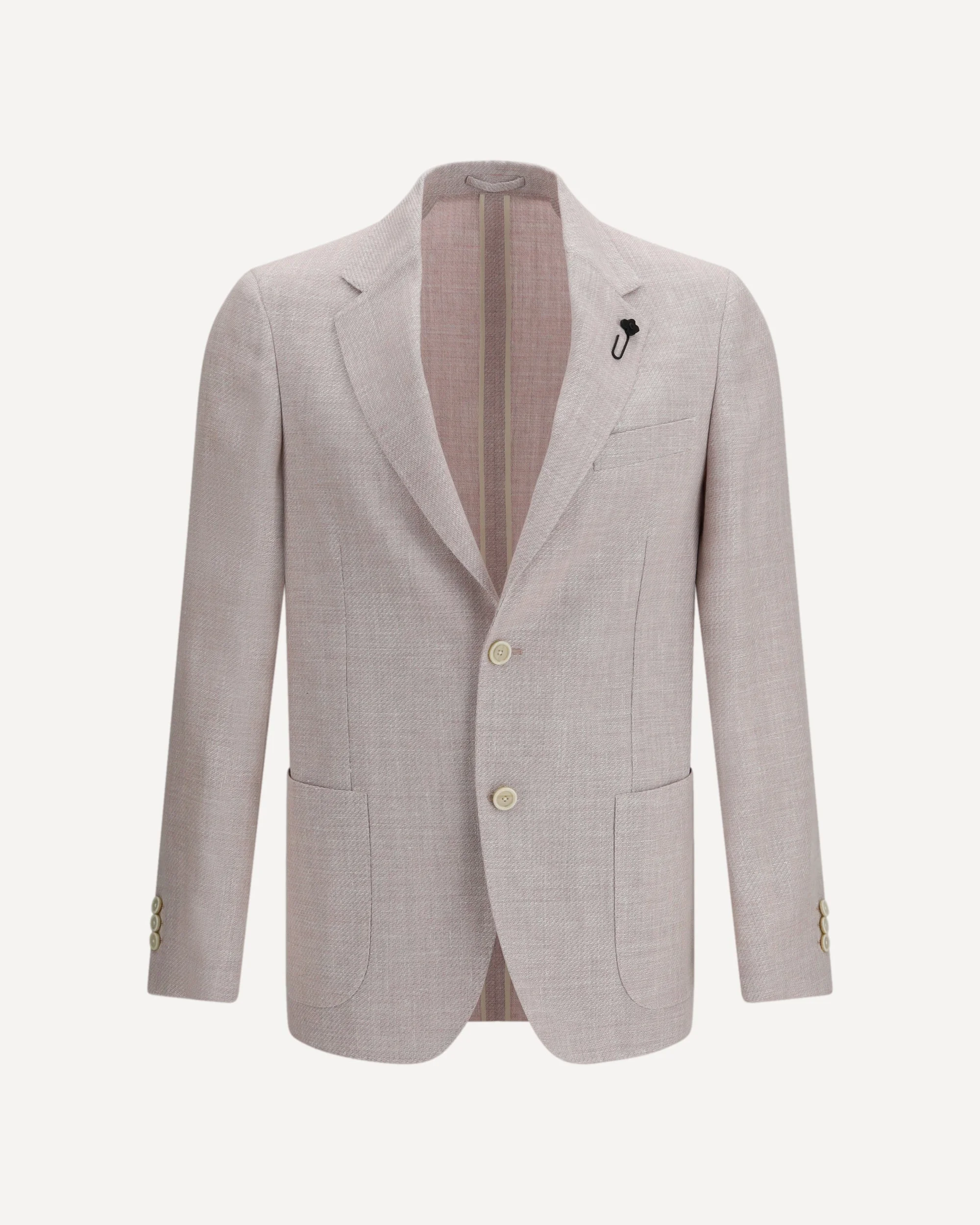 The Roma Blazer in linen and wool by Lardini is an elegant and versatile garment, featuring a single-breasted design with buttons. The two side patch pockets offer functionality, while the iconic pin on the classic lapel adds a distinctive and classy detail. The buttons on the cuffs and the two side slits complete the design, adding a touch of sophistication and comfort. Perfect for a formal or semi-formal look, this linen blazer is ideal for those seeking style and freshness in every season. DETAILS - Sku: CN6202EPAIF66507_710 - Season: SS26 - Fit: Regular - Composition: GENERAL 59% Fleece Wool 41% Linen - MADE IN ITALY