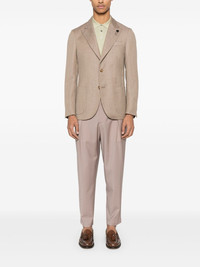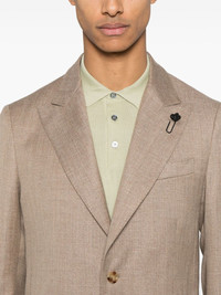 single-breasted blazer Highlights - Camel brown - Front button fastening - Chest welt pocket - Two side patch pockets - Buttoned-cuff sleeves Made in Italy Composition Virgin Wool 67%, Viscose 25%, Linen/Flax 8% SIZE & FIT Model measurements Height 6 ft 2 in(1.87 m) Bust/Chest 38.18 in(97 cm) Hips 36.61 in(93 cm) Waist 29.13 in(74 cm) FittingInformation Designed for a slim fit, offering a comfortable fit that sits just away from the body The vented hem offers movement at the rear Made from a midweight non-stretch fabric