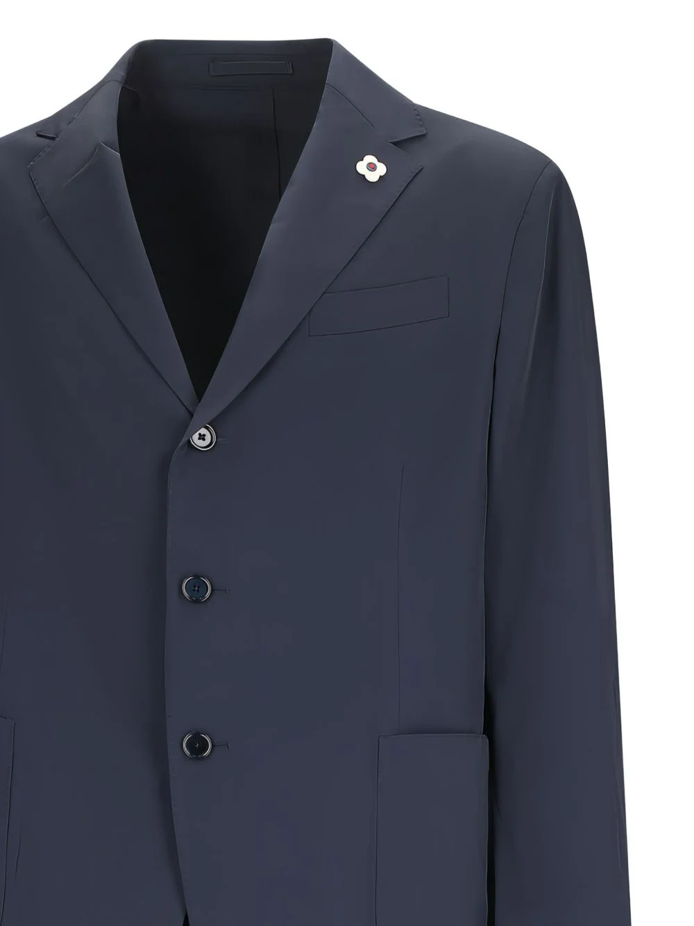 single-breasted blazer Highlights - Blue - Front button fastening - Long sleeves - Notched lapels - Side patch pockets - Front button and zip fastening - Side slit pockets Made in Italy Composition Wool 53%, Polyester 44%, Elastane 3% Washing instructions Read Manufacturer Guidelines