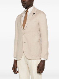 single-breasted blazer Highlights - Sand beige Made in Italy Composition Outer: Virgin Wool 49%, Silk 38%, Linen/Flax 13% Lining: Viscose 52%, Cupro 48% SIZE & FIT Model measurements Height 6 ft 0 in(1.84 m) Bust/Chest 37.79 in(96 cm) Hips 37 in(94 cm) Waist 31.49 in(80 cm) FittingInformation Designed for a slim fit, offering a comfortable fit that sits just away from the body The vented hem offers movement at the rear Made from a midweight non-stretch fabric