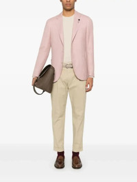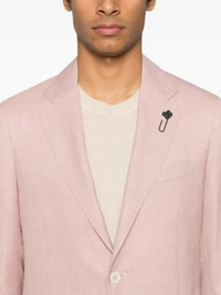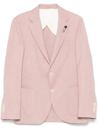 light pink chest welt pocket two side patch pockets English rear vents Size & Fit Model Measurements: Height: 1.87 m Bust/Chest: 90.0 cm Hips: 96.0 cm Waist: 76.0 cm Model wears size 48 Fabric and Care Designer Style ID: ES528AEESIF64522 Designer Colour: 700 PINK Composition: Outer: Silk 15%, Linen/flax 14%, Wool 71%; Lining: Cupro 48%, Viscose 52% Washing instructions: Dry Clean Only Made in Italy